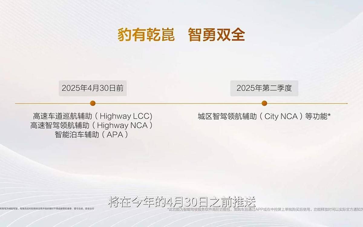 據(jù)悉,廠家將在今年4月30日前,推送高速車道巡航輔助、高速智駕領航輔助和智能泊車輔助,而城區(qū)智駕領航輔助,則是會在今年二季度推送,大家也可以小小地期待下。
