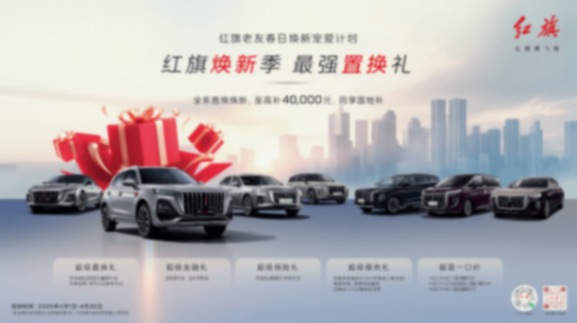 在4月1日-4月30日,品牌推出了有史以來最大力度的煥新政策,補貼力度空前,行業領先。其中,紅旗品牌全系置換煥新,不僅有至高40000元置換補貼,同享國地補,更有“2年零利息,五年低利息”超級金融禮、“至高5000元保險補貼”超級保險禮,以及“終身免費維修(PHEV車型含三電系統)、免費救援、免費取送服務、四年或十萬公里免費保養”超級服務禮,PHEV家族車型還可享超混一口價的超值購車福利。