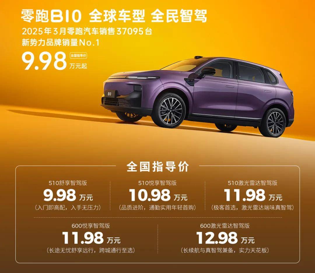 然而零跑并沒有因此懈怠,他們在4月10日正式上市了全新純電SUV--B10,新車共有5款配置,售價9.98-12.98萬元。