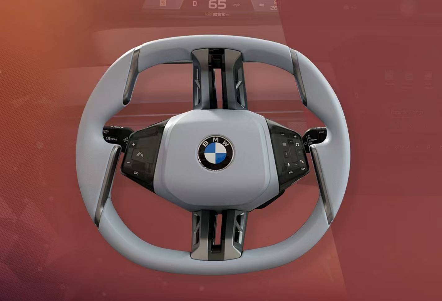 寶馬的新世代座艙內置了豎向雙輻設計方向盤,是以駕駛者為中心,握持時雙手自然搭在“最佳駕駛位”,與此同時,在手不離方向盤的基礎上,大拇指尖掃過區域可覆蓋所有功能按鍵。并且“主動觸覺反饋”技術讓物理按鍵增加觸控確認功能,以直覺交互體驗詮釋新世代寶馬的“純粹駕駛樂趣”。