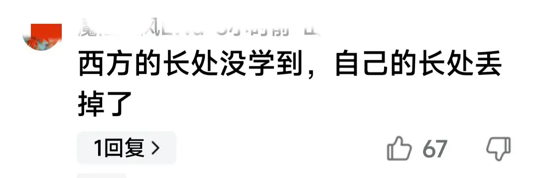 這位網(wǎng)友表示這是撿了芝麻丟了西瓜,西方的長處沒學(xué)到卻把自己的長處丟掉了。
