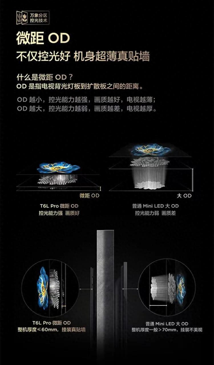 萬象分區技術是 TCL T6L Pro 的核心技術之一,也是電視技術創新的重要體現。這一技術從 Mini LED 電視背光到成像顯示的全鏈路 7 大環節進行了深度優化。