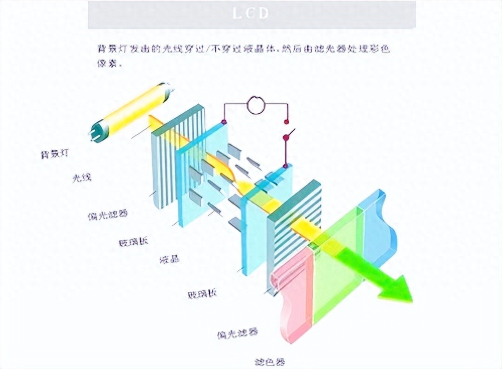 先來看 LCD 屏幕。它由兩片平行的透明電極板組成,中間夾著液晶分子。在電場的作用下,液晶分子的排列發生改變,從而實現圖像的顯示。其功耗主要由背光、尺寸以及內部走線阻抗等因素決定。