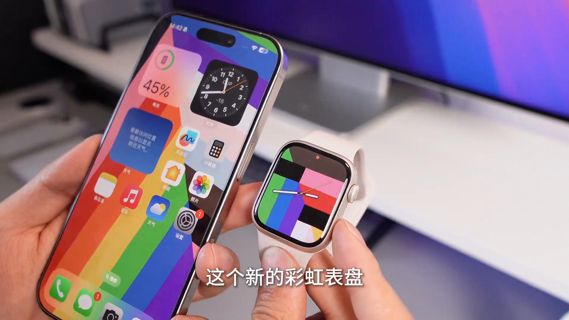 當(dāng)然不確定它總共有多少種,我也沒(méi)去試,但是剛剛看了一下,每次都有不一樣的效果,并且它不同的效果也都有鎖屏到桌面的過(guò)渡效果,其實(shí)還可以。當(dāng)然蘋(píng)果也給Apple Watch配套做了新的彩虹表盤(pán),只需要把Apple Watch更新到watchOS11.5的正式版就可以使用了。