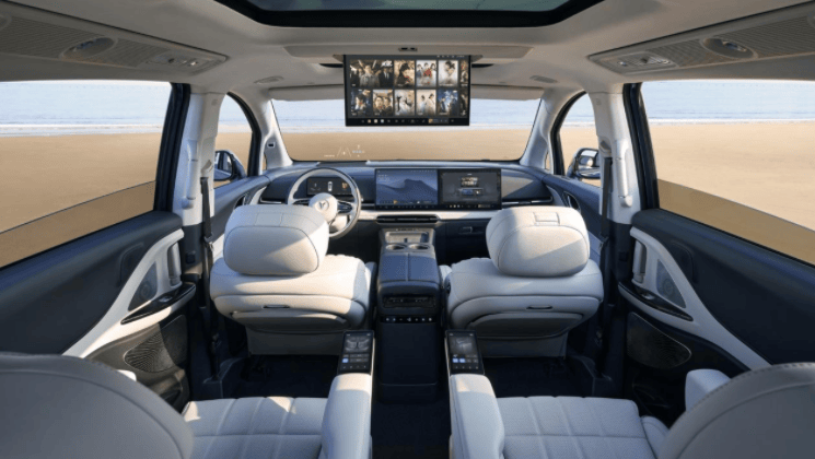 嵐圖夢想家同樣采用了7座布局,前排座椅寬大厚實,部分車型第二排提供兩個獨立的零重力座椅,座椅填充柔軟舒適,具備電動調節、加熱、通風、按摩等功能,還配備了車載冰箱、后排吸頂娛樂屏、副駕娛樂屏和KTV,舒適性和科技感表現同樣出色。不過在對比相近價位車型中,兩款車型的配置有所差異,小鵬X9在座椅配置方面給到的更多,包括主駕駛的頭枕揚聲器、第二排的零重力座椅、第三排的座椅加熱等。