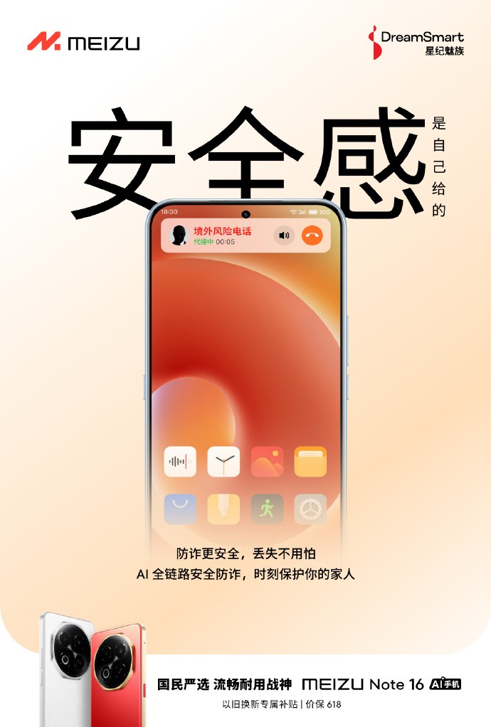 除了外賣服務(wù)的便捷升級,魅族 Note16系列在安全性能上也做出了重大提升。在炎炎夏日,人們更需要一份安全感。魅族 Note16系列搭載了AI全鏈路安全防詐系統(tǒng),能夠有效識別和攔截詐騙電話,減少用戶遭受電信詐騙的風(fēng)險。此外,該系列手機還具備騷擾電話自動代接功能,通過智能識別,自動接聽并記錄可疑電話,進一步保護用戶的財產(chǎn)安全。