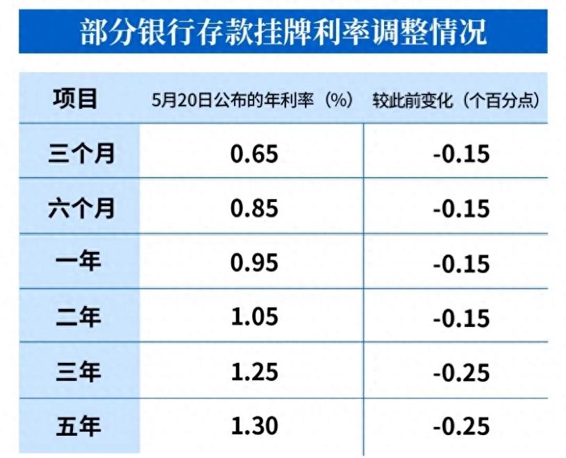 2025年5月20日國有大型銀行率先下調人民幣存款利率,目前各大銀行已通過官方App或網站更新人民幣存款利率表,具體調整如下: