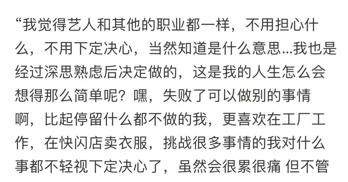 徐智秀本人在接受采訪時,對于自己的這些經歷表示:“比起停留什么都不做的我,更喜歡在工廠工作,在快閃店賣衣服,挑戰很多事情的我對什么事都不輕視下定決心了。雖然會很累很痛,但不管什么事都一樣。”這段話不僅展現了她對生活的熱愛,更凸顯了她不畏艱難,勇于挑戰自我的精神。
