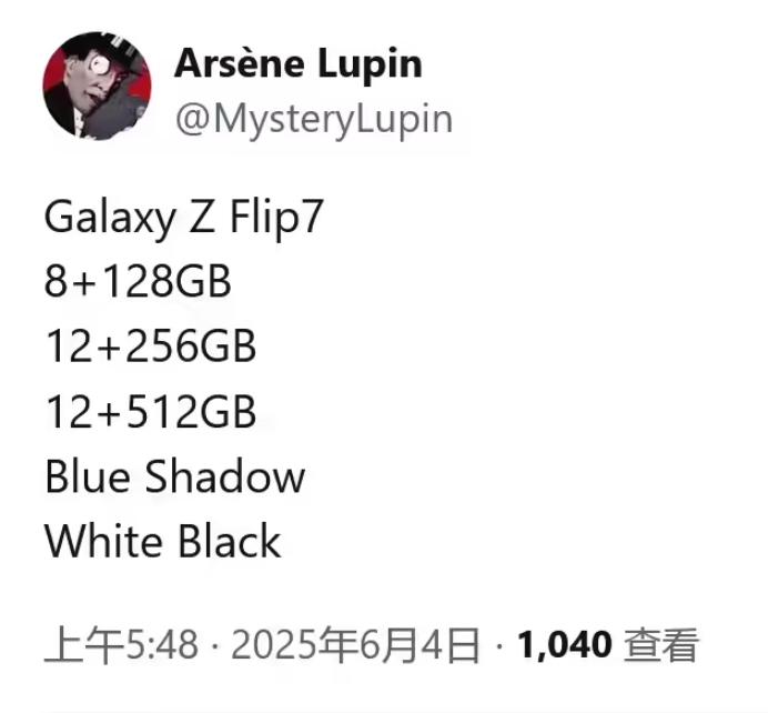 X上有人爆料了三星Galaxy Z Fold7和Z Flip7的存儲規格和顏色。