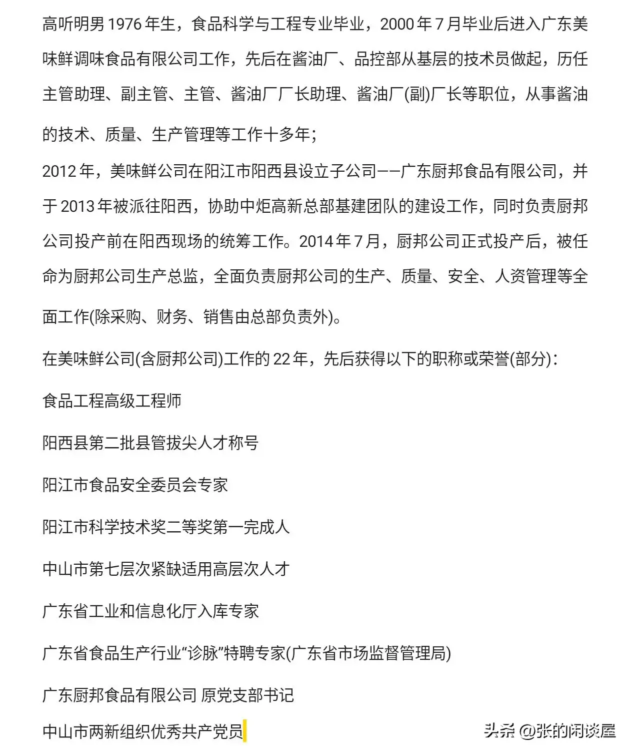 舉報人在美味鮮公司(含廚邦公司)工作的22年,其個人介紹: