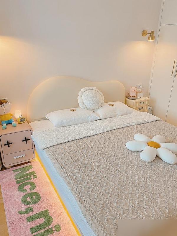 仔細看他們的設計,最聰明的就是“打通”二字。陽臺、客廳、餐廳、玄關全連在一起,沒裝任何隔斷,地面通鋪木地板,墻面刷成奶油白,走進去視線一點不擋。沙發、餐桌全靠墻放,連茶幾都選了輕便的小圓桌,騰出的動線空間,端著水杯來回走都不帶繞路的。我家客廳也不大,以前總覺得“擺不下”,看人家這布局才明白:少點“占地方”的大件,空間自然就“活”了。