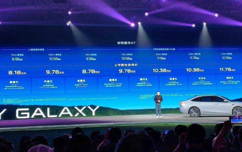 作為“電混家轎顛覆者”的吉利銀河A7基于GEA全球智能新能源架構(gòu)打造,于8月8日正式上市,共推出7款車(chē)型,售價(jià)區(qū)間為8.98-12.58萬(wàn)元,限時(shí)指導(dǎo)價(jià)8.18-11.78萬(wàn)元,較原價(jià)直降8000元,更比秦L DM-i的起售價(jià)低1.8萬(wàn)元。這一顛覆性定價(jià)策略不僅擊穿了混動(dòng)家轎長(zhǎng)期固守的10萬(wàn)元心理防線,更將B+級(jí)混動(dòng)轎車(chē)的門(mén)檻拉至燃油A級(jí)車(chē)區(qū)間(如軒逸、朗逸),形成跨維度競(jìng)爭(zhēng)。