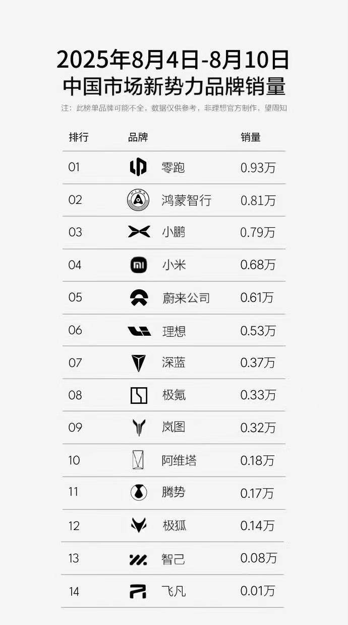 除了零跑和鴻蒙智行,小鵬、小米以及蔚來公司分別在上周取得了0.79萬輛、0.68萬輛以及0.61萬輛的成績。其中小米雖然是目前最不缺訂單的新勢力品牌,但YU7上市以來,小米周交付量并未取得新的突破,這也在一定程度上反應了其產(chǎn)能“煩惱”。