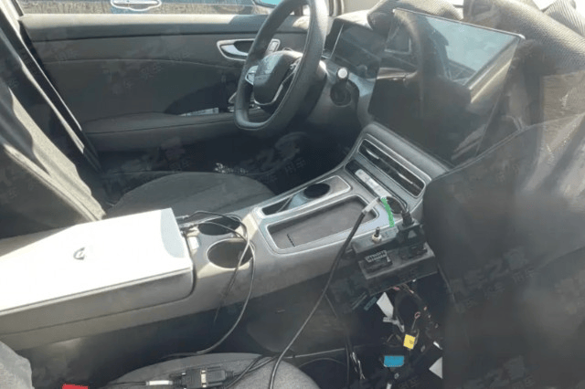 從內飾諜照來看,尚界H5的內飾布局延續了鴻蒙座艙的風格。懸浮式中控大屏、雙幅式方向盤以及液晶儀表的組合,與問界M7的風格較為接近。尚界H5在細節上也展現了一定的創新。例如,中央島臺區域保留了物理按鍵,并配備了一個手機無線充電面板,旁邊疑似還有旋鈕換擋機構。
