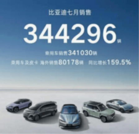 憑借龐大的產品矩陣和全球布局,比亞迪形成了全鏈路的銷量優勢:7月王朝及海洋網貢獻31.51萬輛,方程豹1.42萬輛,騰勢1.14萬輛,仰望339輛;