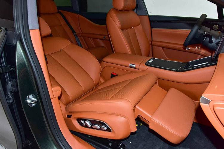 新車采用大5座布局,副駕帶有零重力座椅,支持18向電動調節和靠背10點按摩等功能,前排和后排兩側座椅標配座椅通風、加熱、按摩,包括壓縮機冷暖箱、副駕密碼箱、32英寸巨幕投影、后排小桌板、25揚聲器HUAWEI SOUND音響系統等均出現在新車上。