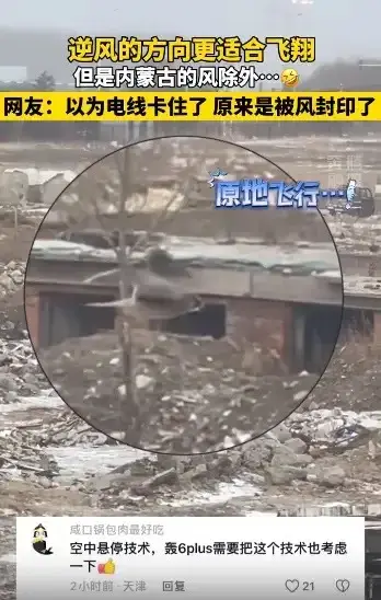 據該網友介紹,2月29日下午,他在內蒙古一處開闊地帶拍攝風景時,突然發現一只鳥兒在空中飛翔時突然停滯,無論鳥兒如何掙扎,始終無法移動。一開始,他誤以為是鳥兒被電線或其他物體卡住了,但仔細觀察后發現,原來是由于內蒙古特有的強風造成的。
