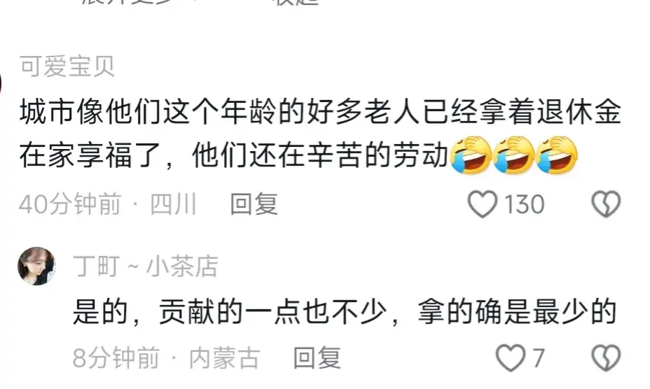 城市退休工人們部分退休金特別高,甚至一個普通打工仔正常上班還不如一個城里老人的退休工資高。