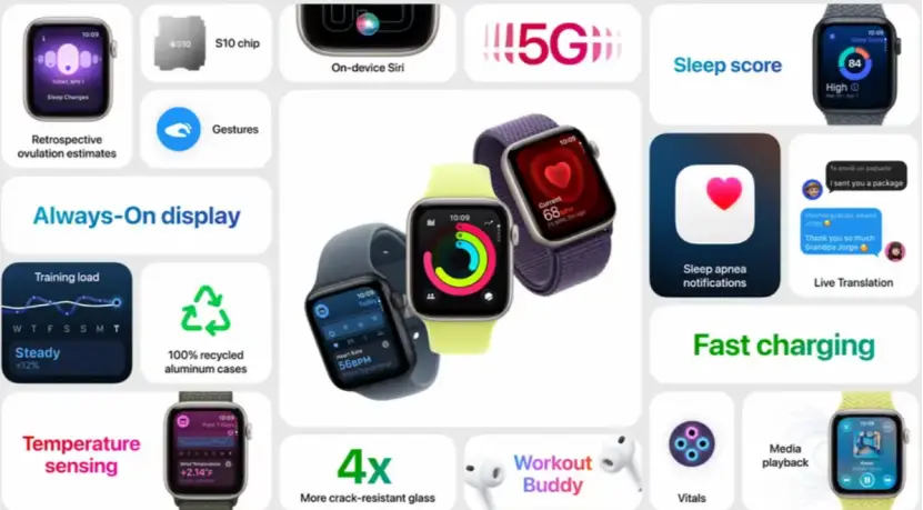 至于手表產品線Apple Watch,本次發布會上最值得關注的兩大亮點則是Apple Watch S11“高血壓預警”功能的加入和SE的迭代。