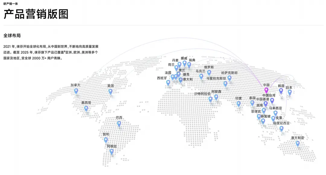 不止如此。在“不出海、就出局”的年代,打破技術壟斷,掌握行業話語權的“徠芬們”在dayone就注重全球化。我們了解到,截至目前,徠芬產品已覆蓋亞洲、歐洲、北美等多個國家及地區,積累全球超2000萬用戶。