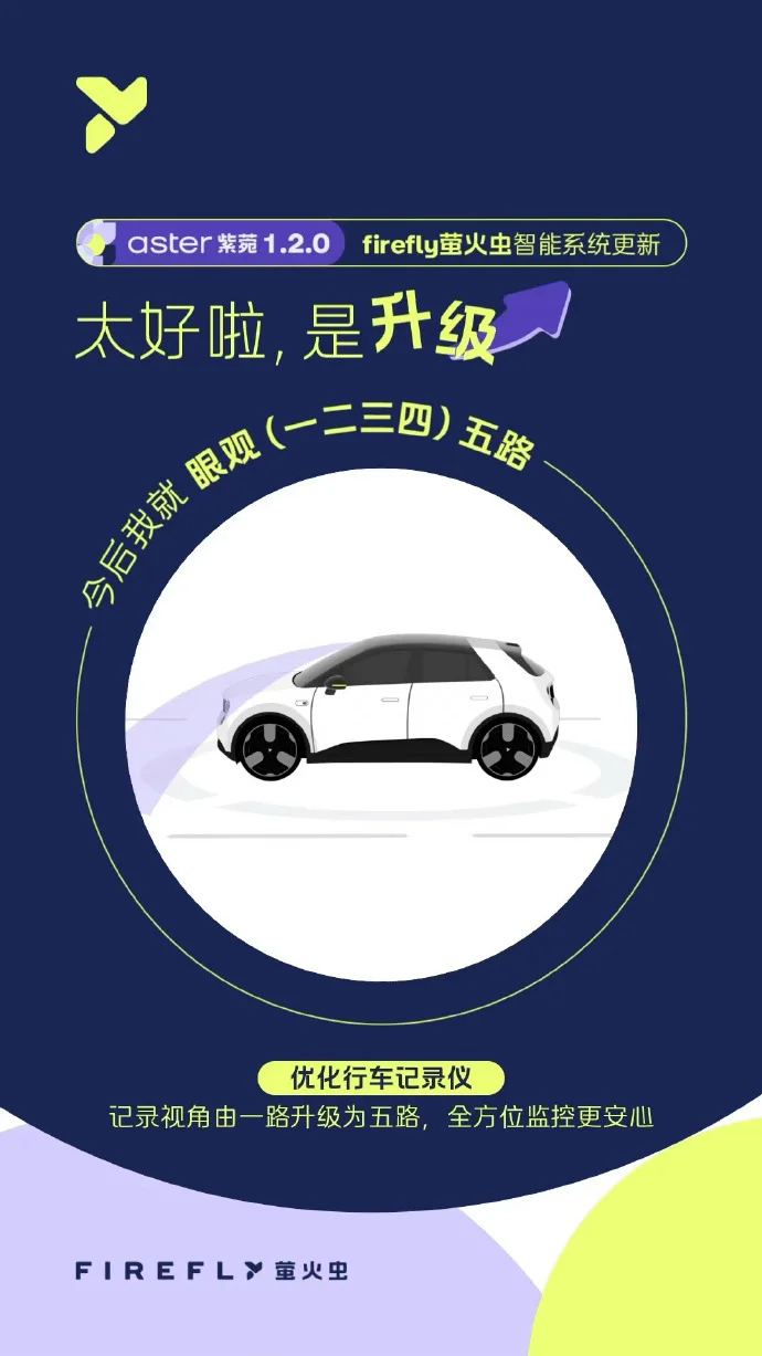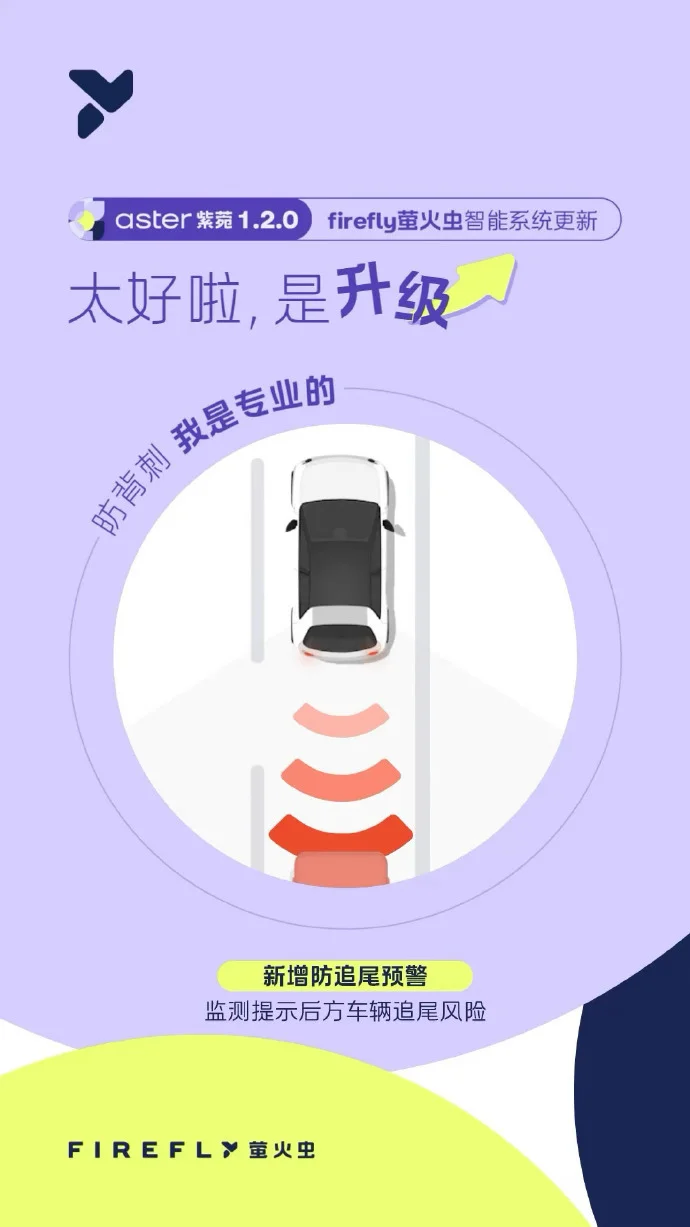 9月25日,firefly螢火蟲汽車官方宣布,其車載智能系統aster紫菀迎來1.2.0版本更新,國慶節前全面上線。