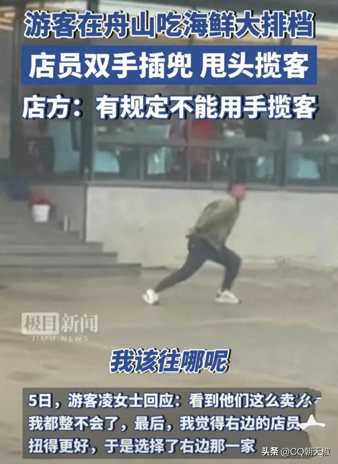 近日,有顧客乘車到浙江舟山吃海鮮,可是車都還沒停下來,兩家開在一起的大排檔店員,就使出渾身解數招攬客人。