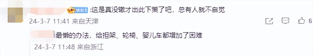也有網友擔心,“這下120的推車也進不來了”“最懶的辦法,給擔架、輪椅、嬰兒車都增加了困難”等。