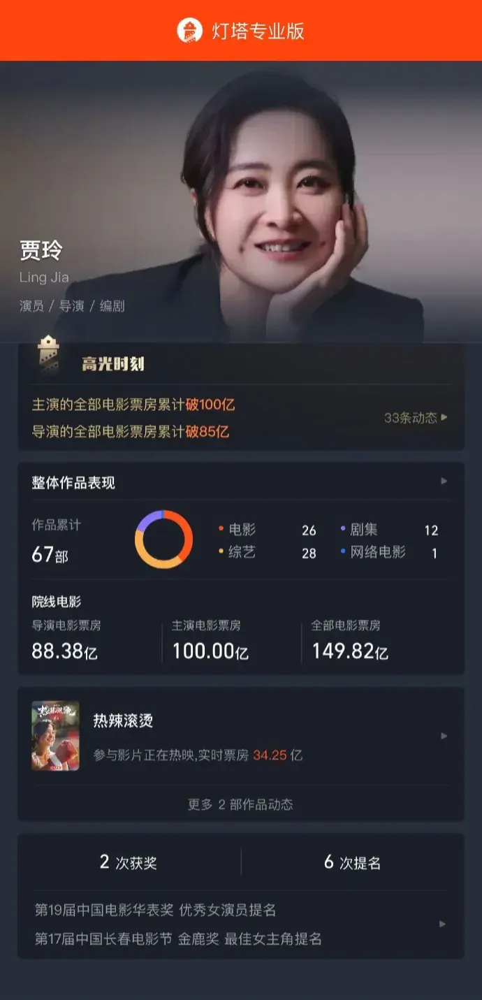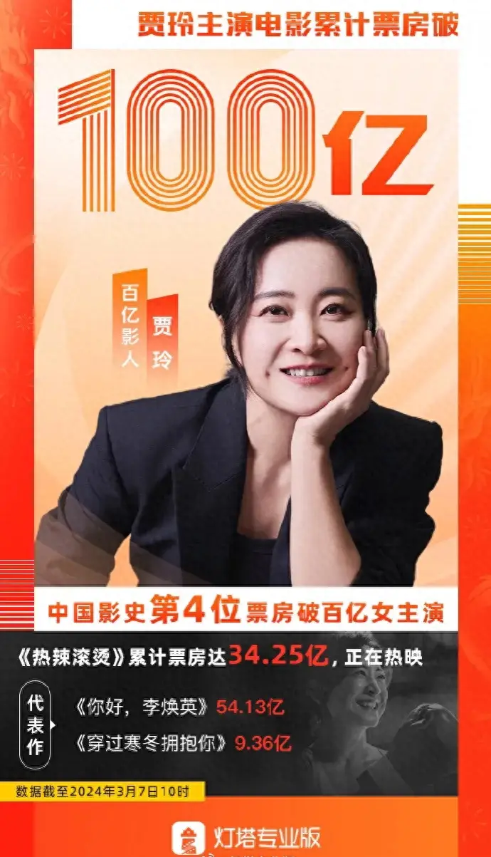 據(jù)燈塔專業(yè)版微博消息,電影《熱辣滾燙》的熱映助力賈玲主演電影票房突破 100 億,使她成為中國影史第四位票房百億女演員。同時,賈玲導(dǎo)演的電影票房也已突破 88 億。