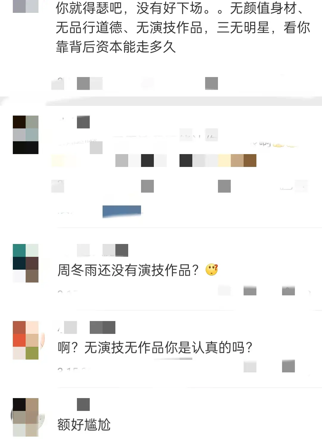 于是評論區就慘了,基本上是罵聲一片,并且大多數都是在罵周冬雨。