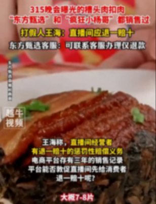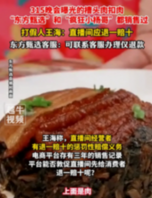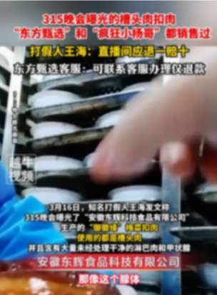 近日,電商平臺東方甄選卷入一場食品安全風波。著名打假人士王海曝光了該平臺銷售的"御徽緣"品牌梅菜扣肉產品存在嚴重問題,主要成分是非食品原料槽頭肉,同時含有大量未經有效處理的淋巴肉和甲狀腺組織。