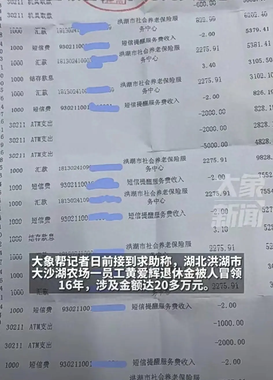 剛才看到網絡上的一則新聞,湖北洪湖市大沙湖農場一位老人退休金被別人冒領了16年之久,冒領的金額高達20多萬元,冒領者曾出5萬元買信息。