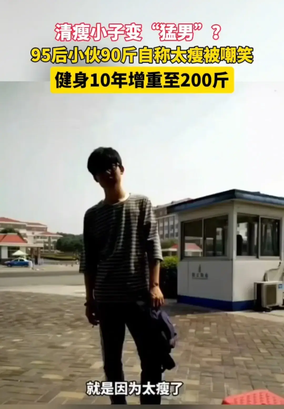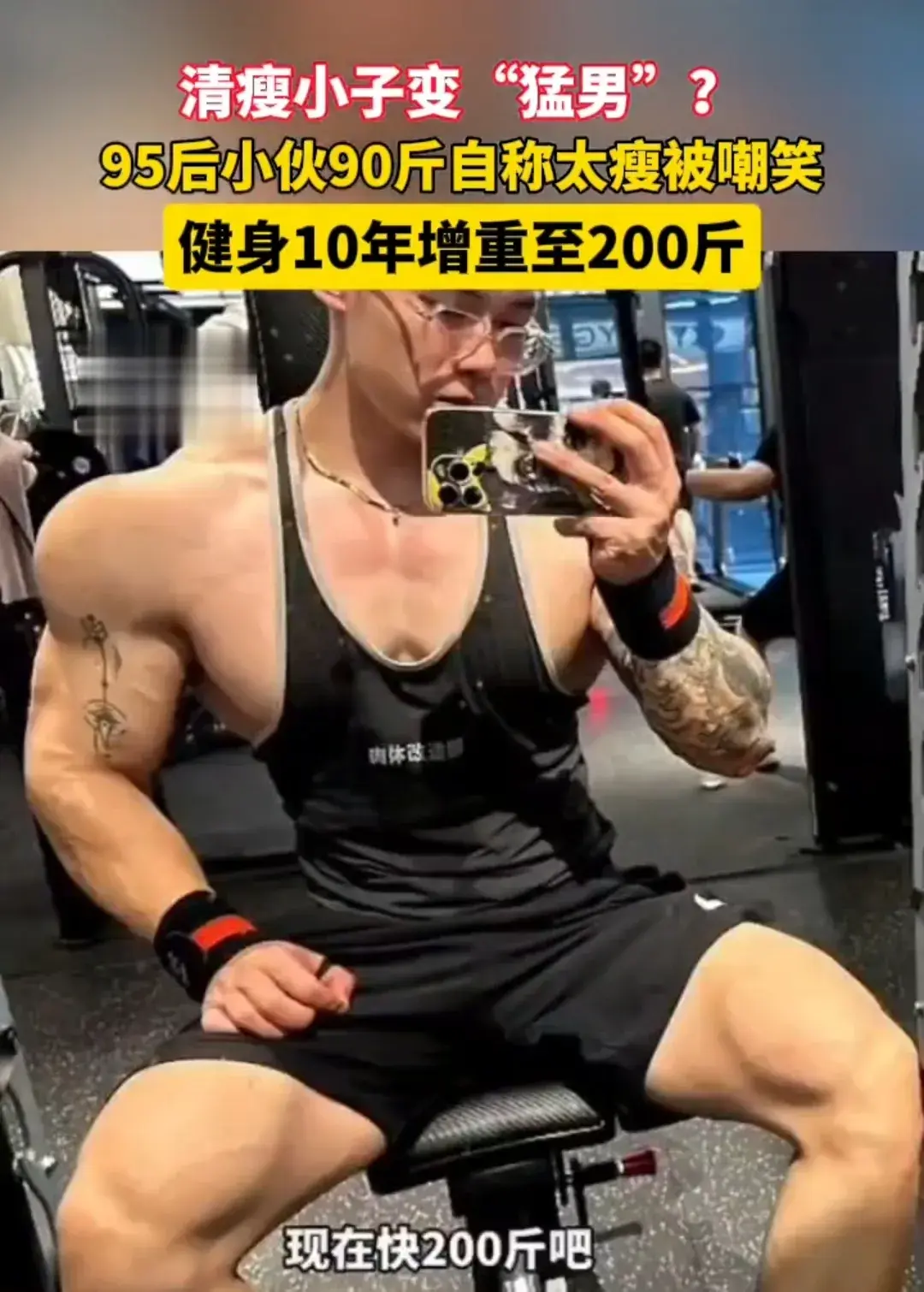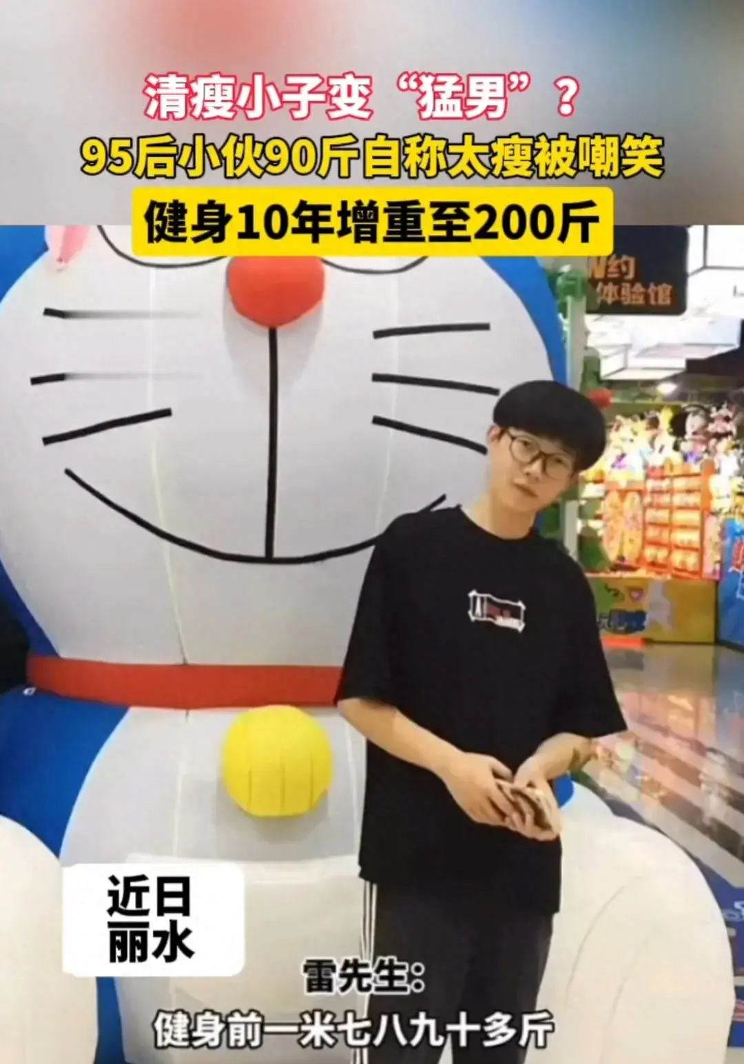近日,麗水,95后小伙雷先生身高178,體重90多斤,自稱因?yàn)樘葸€曾被嘲笑沒(méi)有男子氣概,于是努力健身,10年下來(lái)增重到了200斤。小伙表示,現(xiàn)在感覺(jué)還挺好的,人也自信了。
