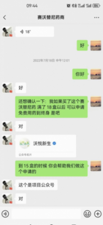 不過,也有人心里打鼓,怕買了這么多藥后,到頭來援助項目不兌現。但項目負責的藥代人員馬上在微信上跟他們確認,說是可以保證給患者‘終身’免費提供藥品。