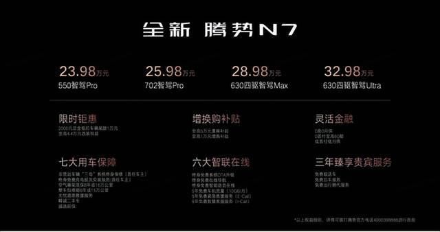 值得一提的是,即刻下定全新騰勢N7,可享定金2000元抵扣車輛尾款10000元上市權益。同時,為感恩回饋老用戶,騰勢汽車不僅推出了至高50000元的置換補貼,相當于0元換新,而且還有非常給力和周到的權益,讓老用戶買車更放心、換車更開心、用車更舒心。