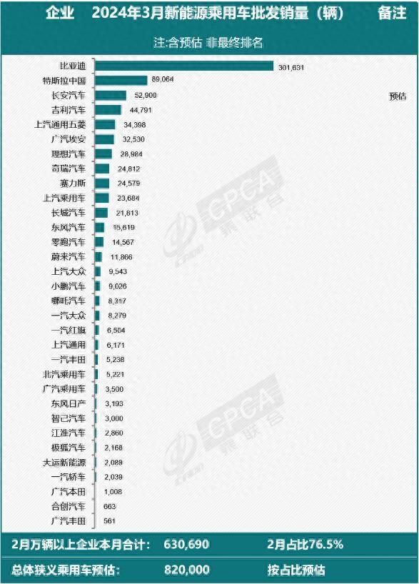 爭(zhēng)奪新能源車(chē)市,競(jìng)爭(zhēng)殘酷又激烈,有人迎來(lái)高光時(shí)刻,有人被慘淡淘汰出局。在市場(chǎng)面前,有銷(xiāo)量才能有更大的發(fā)展空間。3月份,鬼哥在“崔東樹(shù)”公眾號(hào)上看到乘聯(lián)會(huì)發(fā)布的2024年3月新能源乘用車(chē)廠商批發(fā)銷(xiāo)量信息。