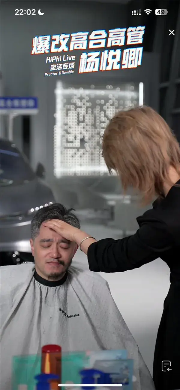 在諸多車企發布銷量的報道中,高管楊悅卿為帶貨直播剃須剪發,讓“高合汽車爆改高管”短暫上了一下熱搜。