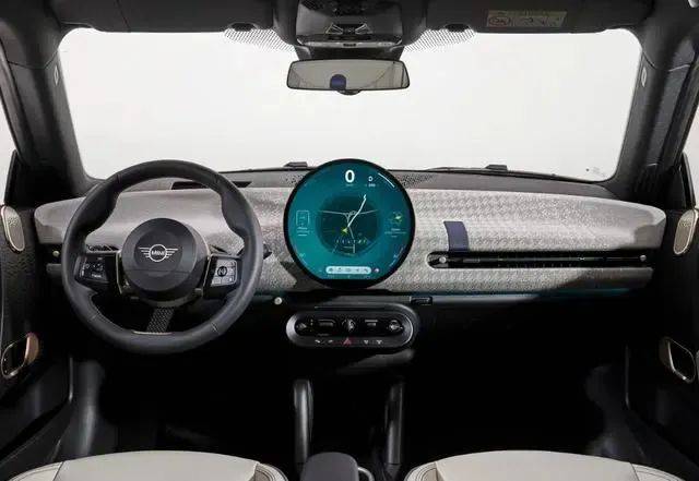 車內(nèi)部分,經(jīng)典的圓形中控屏得以保留,并且繼承了更多的功能。材質(zhì)方面,全車還摒棄了皮革材質(zhì),轉(zhuǎn)而大面積使用織物材料包覆,這種材質(zhì)是MINI專門開發(fā)的針織工藝,均由再生聚酯纖維制成,結(jié)構(gòu)多樣、質(zhì)地精良、易于打理。