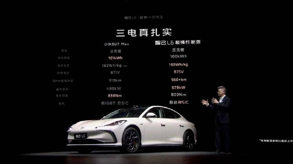 在蔚來的150kWh電池包上車之后,智己的133kWh固態電池,也隨著智己L6的上市給裝車了。關于發布會,有幾個關鍵詞,包括了21000轉電機、準900V快充、133kWh固態電池、CLTC純電1000km、底盤空懸+CDC、后輪轉向以及支持蟹行模式。
