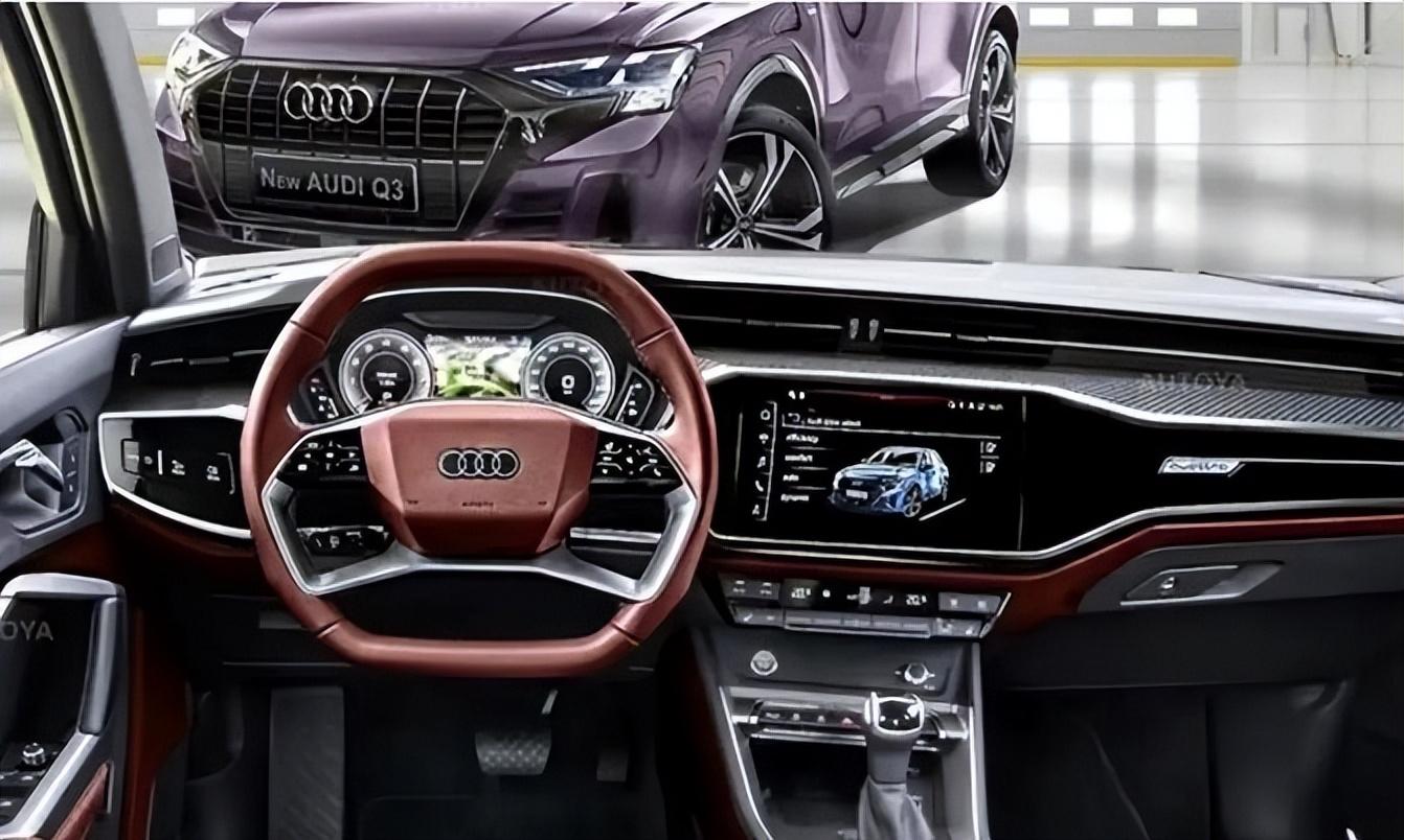 內飾信息目前并沒有公布,但是根據此前的渲染圖來看,奧迪Q3同樣將保持注重科技感的座艙設計,中控臺整體與現款車型略有相似,雕塑般立體的型面結構加上烤漆飾板的裝飾,讓細節處的精致感拉滿,中控臺中央依舊采用家族化的內嵌屏設計,下方布局有簡約的按鍵配備,儀表部分體現出數字化座艙理念,全液晶的顯示也能提供多種界面切換,值得一提的是方向盤采用上下平底的新式四輻式鏤空結構,與現款A8L有些相似。