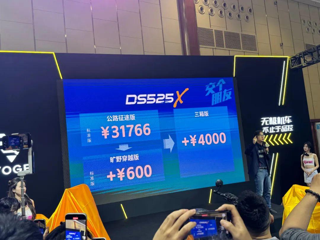 DS525X公路征途版&曠野穿越版也在發(fā)布會上閃亮登場,公路征途版售價(jià)31766元;曠野穿越版加600元,32366,三箱版再加4000即可。