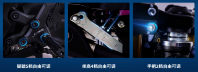 最直觀的變化就是車身多處采用可調(diào)設(shè)計(jì):腳踏5檔可調(diào)、坐高4檔可調(diào)、手把2檔可調(diào),這就意味著,不管你的身高如何,都能找到最舒適的坐姿,對新手來說無疑是非常友好的。