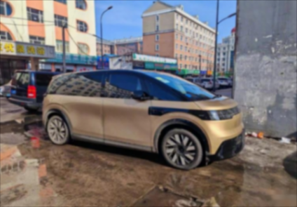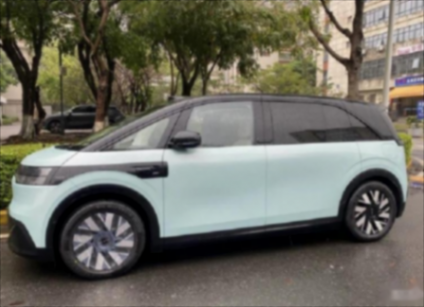 車身側面延續了圓潤的“大面包式”結構,根據曝光的實車圖顯示,新車有淺藍、金色等多種車色選擇,還有19/20英寸兩種造型輪轂。車身側面還能看到和極氪X同款的按鍵開門設計以及MPV中很常見的側開門設計。