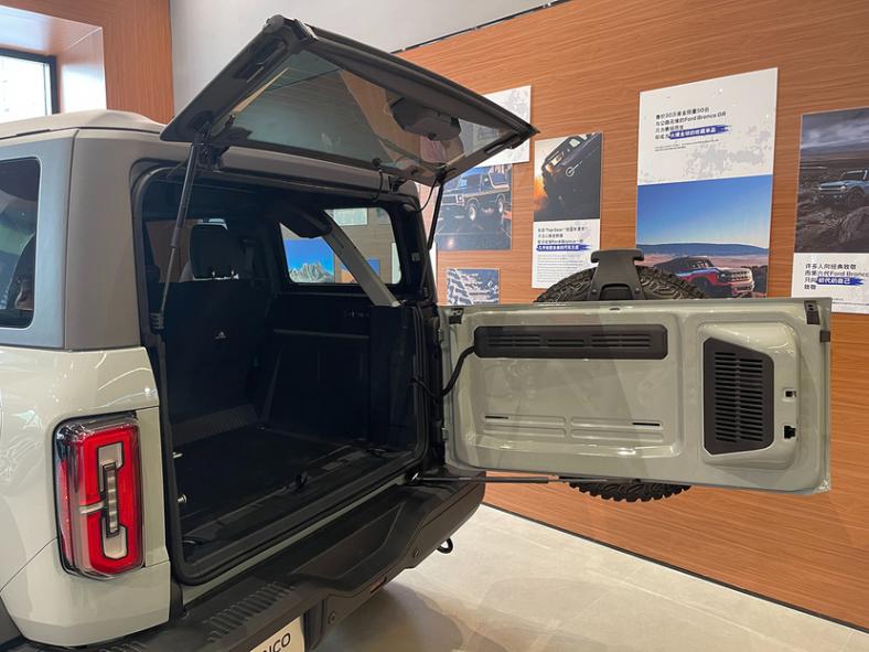 后備廂采用分段+側開式的開啟形式,后風擋玻璃可單獨向上打開,尾門則往右平開。這樣的開啟形式很適合野外,能滿足一些特定的場景需求。