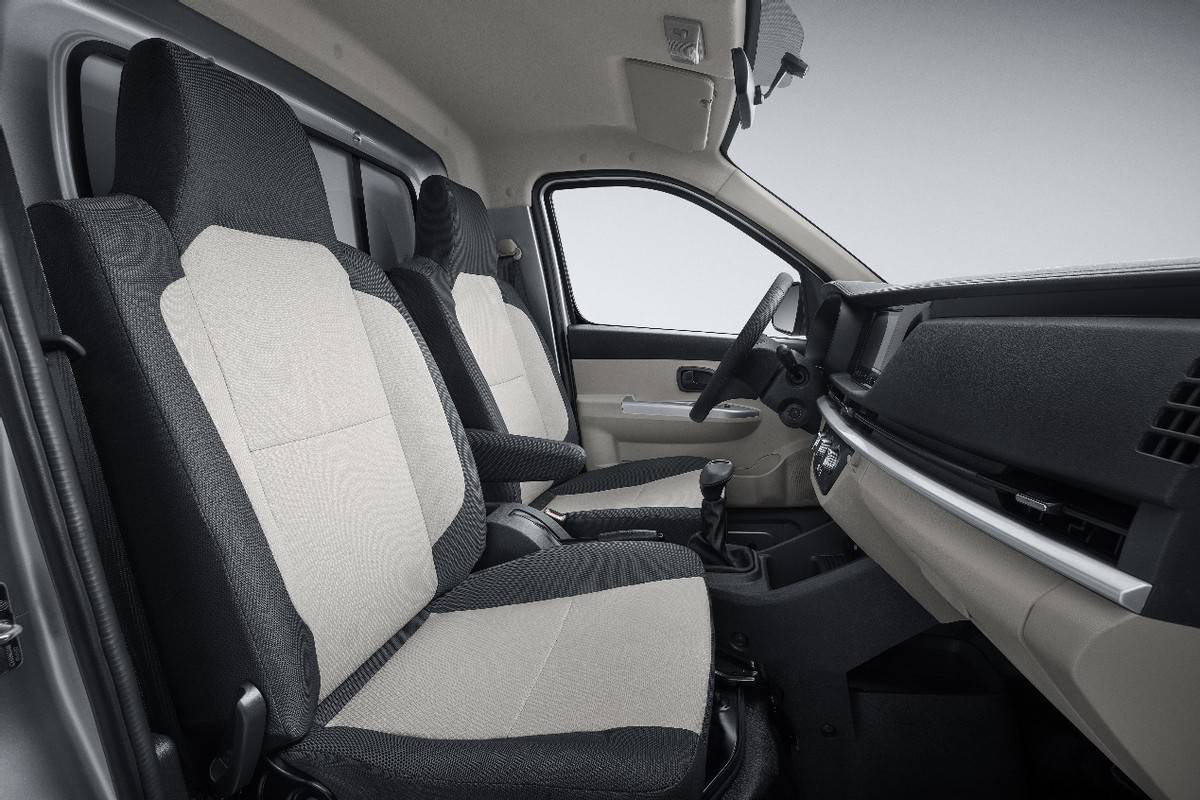 新長安星卡EV在內飾設計上可謂匠心獨運,每一處細節都經過精心打磨,為用戶帶來更加愉悅舒適的駕乘體驗。中控臺采用上深灰下米白的配色,層次感十足;鋼琴烤漆材質大屏飾板點綴,賦予更加年輕時尚的屬性;主副儀表板連接式設計,下方設計置物盒更便利,將“功能美學”也融入其中。除此之外,為了緩解用戶創業道路上,長時間駕駛的疲憊感,新長安星卡EV的主駕駛座椅能夠進行前后滑動+靠背角度調節,滿足個性化舒適度需求。