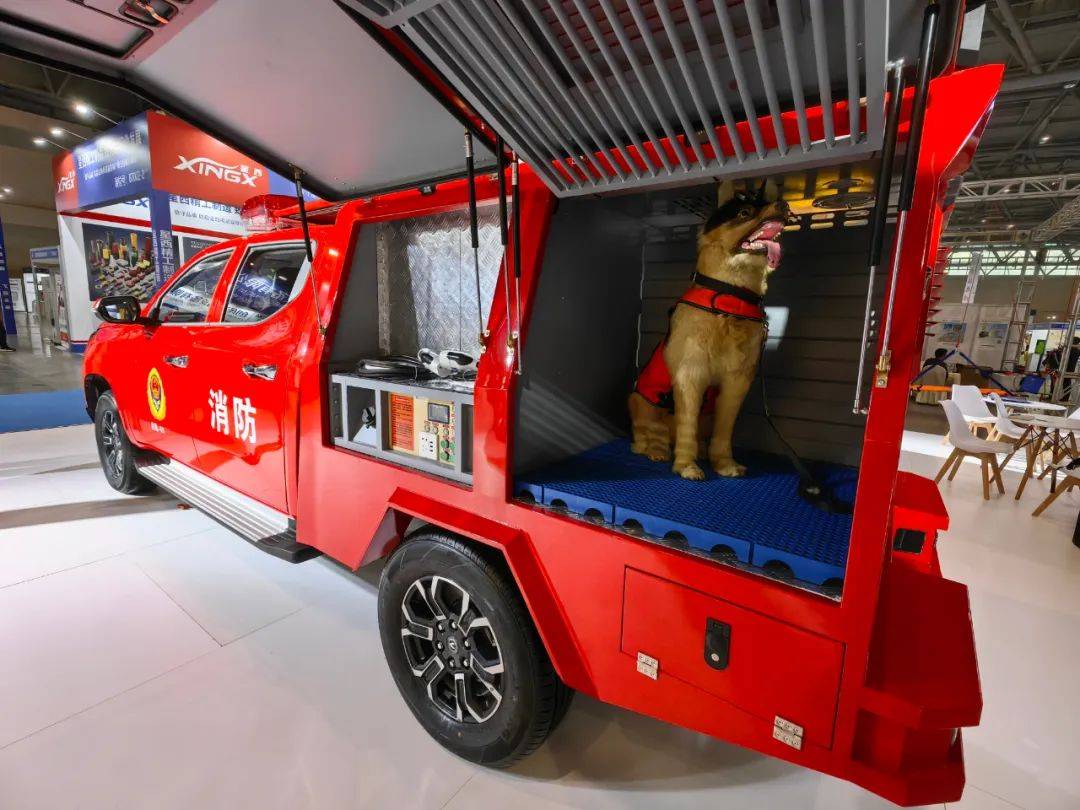 它是由長安獵手改裝而來,可滿足消防員在車輛熄火狀態(tài)下,保證犬艙和無人機長時間供電,以適應(yīng)不同的作戰(zhàn)應(yīng)用場景。因為車輛配備了31.18度鋰電池,并在后艙設(shè)置了3.3KW(220V)外放電接口,可充分保證兩個多功能犬艙消毒、照明、溫度檢測調(diào)節(jié),以及實現(xiàn)千米高空照明和高空喊話無人機作業(yè),偵察機可覆蓋方圓7公里區(qū)域的偵查、巡檢任務(wù)。