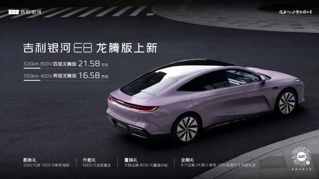 吉利銀河E8龍騰版分為單電機兩驅版和雙電機四驅版,其中四驅版采用800V高壓平臺,最大功率475kW,最大扭矩710Nm,零百加速僅需3.49秒,極速210km/h。在800V快充平臺下,可實現5分鐘充能180km,18分鐘充能10%至80%的效率。