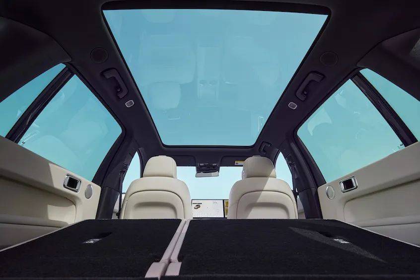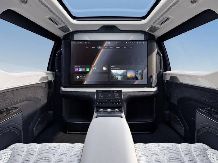 極氪009光輝的前后排帶有隔斷,隔斷處嵌入一臺 43 英寸4K智慧屏,提供冷熱冰箱、隱私玻璃、31揚聲器雅馬哈高級音響等舒適配置。為了保障乘客人身和財產安全,009光輝還擁有雙保險柜、隱私調光玻璃、無痕模式鏈接、7×24小時衛星通訊、200m探測距離的激光雷達等硬核配置。