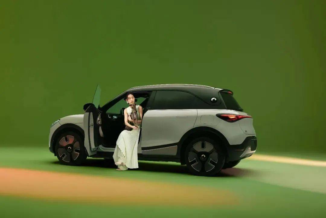 smart精靈#1是一款小型純電動SUV,外觀采用圓潤可愛的風格,十分吸引年輕人的目光。采用雙色車身,無邊框車門,隱藏式門把手等潮流配置。B柱有奔馳標,C柱有smart LOGO,彰顯身份。精靈#1尺寸為4270*1822*1636mm,軸距2750mm。